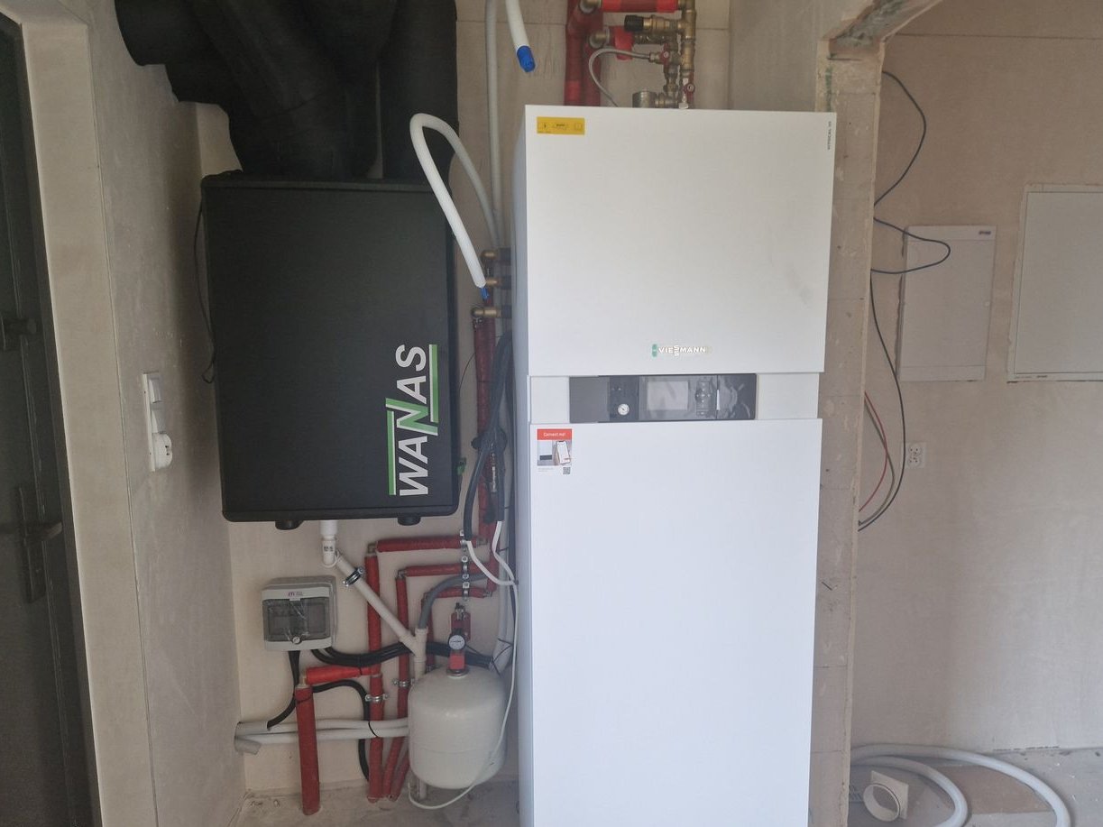 Nowoczesna pompa ciepła Vitocal 111-S firmy Viessmann- Pompy ciepła powietrze/woda w układzie Split składają się z dwóch osobnych jednostek: w jednostce zewnętrznej czynnik chłodniczy w parowniku obiegu chłodniczego, odbiera energię cieplną powietrzu atmosferycznemu, a sprężarka transformuje ją do poziomu temperaturowego, potrzebnego do ogrzewania pomieszczeń. Ciepło to jest następnie doprowadzane przewodem do jednostki wewnętrznej i w jej skraplaczu oddaje ciepło do sieci grzewczej. Jednostka wewnętrzna jest już fabrycznie wyposażona w elementy obiegu wodnego, takie jak trójdrożny zawór przełączający, pompa obiegowa i regulator pompy ciepła. Nowy czynnik chłodniczy R32 (od 4,0 do 8,1 kW) cechuje się niskim współczynnikiem GWP (Global Warming Potential), przyczyniając się tym samym do podniesienia poziomu ekologiczności nowego pokolenia pomp ciepła.