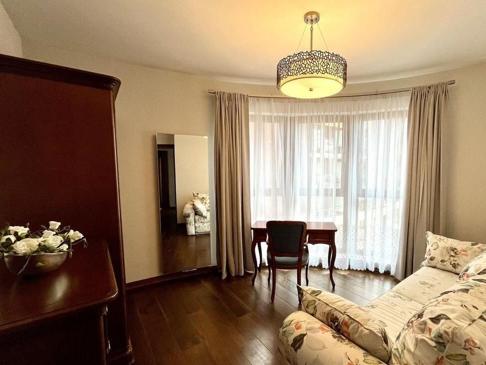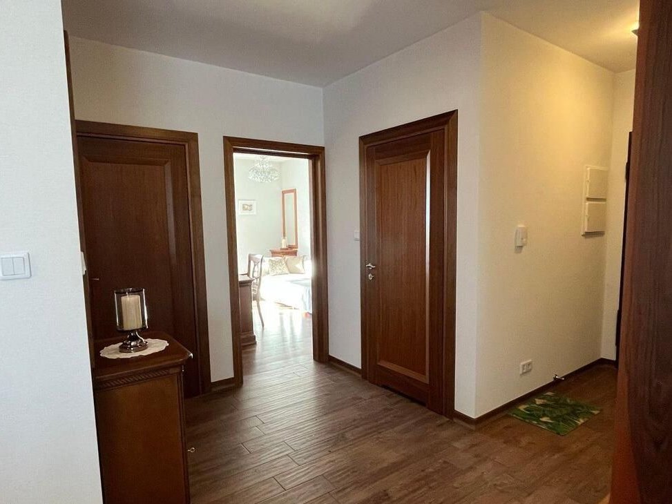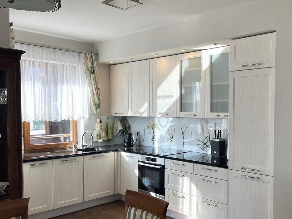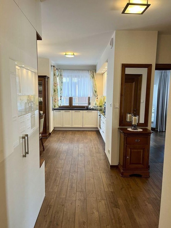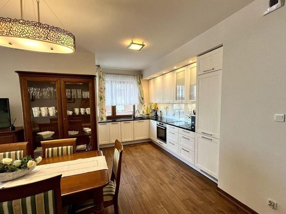 Mieszkanie przestronne i bardzo zadbane, użytkowane wyłącznie jako prywatne lokum wakacyjne – nie było intensywnie eksploatowane. Wykończone pod klucz w wysokim standardzie, urządzone w eleganckim, klasycznym stylu. Wnętrza wyposażone w wysokiej jakości meble z drewna olchowego. Duże okna oraz narożne przeszklenie zapewniają doskonałe doświetlenie i poczucie przestrzeni.