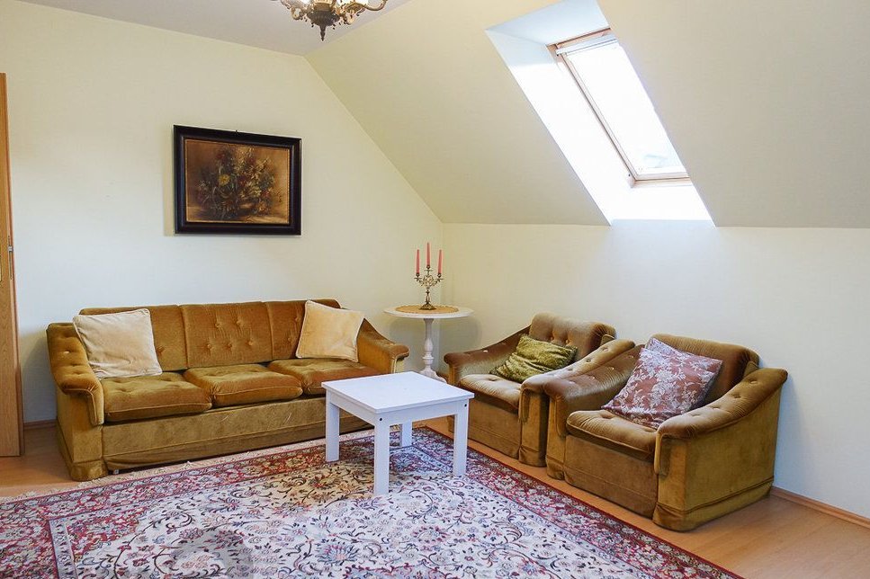 For sale is a detached house, built in 2000, very comfortable and functional. It is situated in a unique, intimate location in Gumieńce, on a very quiet street, surrounded by lush greenery and other single-family homes and green recreational areas. The area is located on Huzarów, Niepołomicka, and Tyniecka streets. The house has good access to public transportation. It is ideal for a multi-generational family. A family atmosphere was a priority in creating the house, which is evident in the thoughtful, friendly layout. Thanks to large windows on the ground floor, the interiors are full of natural light, emphasizing the open character of the house. The house was carefully planned with the family in mind, creating ideal conditions for relaxation and work. GROUND FLOOR (93.5 m²): * Hall (10.5 m²) - open to the living room, with entrances to the kitchen, guest toilet, technical rooms, and the attic. * The living room (32 m²) features a fireplace and double doors leading to a terrace (16 m²) surrounded by greenery, an ideal place for relaxation, and beyond to a garden with trees and shrubs. The living room opens to the hall. * The heart of the house is the spacious, bright kitchen (13.5 m²) - square in shape, with a window, whose soft lighting creates a cozy atmosphere, making cooking a real pleasure and conducive to family gatherings. Practical built-in furniture with appliances: refrigerator, 60 cm Whirlpool dishwasher, electric stove with ceramic hob and Amica oven, extractor hood), table and chairs. * Guest toilet (2.6 m²) - toilet with sink. FIRST FLOOR (88 m²): * Bedroom 24.5 m² (27.3 m² floor area)) with the convenience of a spacious wardrobe with a window, * Wardrobe 9 m² (11.5 m² floor area) * Room 16 m² (20.4 m² floor area) * Room 9.5 m² (12.7 m² floor area) * Lounge 18.5 m² (20 m² floor area) with a roof window, possibility of creating a common computer area * Bathroom 11.1 m² (13.5 m² floor area) with a bathtub, washbasin, toilet and bidet, with the possibility of installing a shower cabin, roof window. * Small wardrobe with sloping ceilings without a window. On the first floor, the bedrooms and rooms have full-size and roof windows. ATTIC: Access from the first floor hall via a drop-down staircase. Three storage rooms with roof windows. The roof is insulated, and the ceiling above the first floor is insulated. The attic height at its highest point is 2.65 m. The technical rooms are located on the ground floor, separate from the living area: * Laundry room (10.5 m²) with bathtub and washing machine, Buderus gas condensing boiler (replaced 3 years ago), and hot water tank (118 liters) * Pantry (5.2 m²) with an additional refrigerator * Garage (19.2 m²) for one car, with a remote-controlled up-and-over gate. Entrance to the house is through a vestibule (2.4 m²), with terracotta floors. BUILDING DESCRIPTION: Usable area 189.5 m² (more on the floor), plot 492 m². Surrounded by single-family and terraced houses. Garden with ornamental plantings. The entrance to the building and garage are from the ground floor. The house has no basement. The usable area is 189.5 m², and the total area is 250 m². The house is situated on a 492 m² plot. T