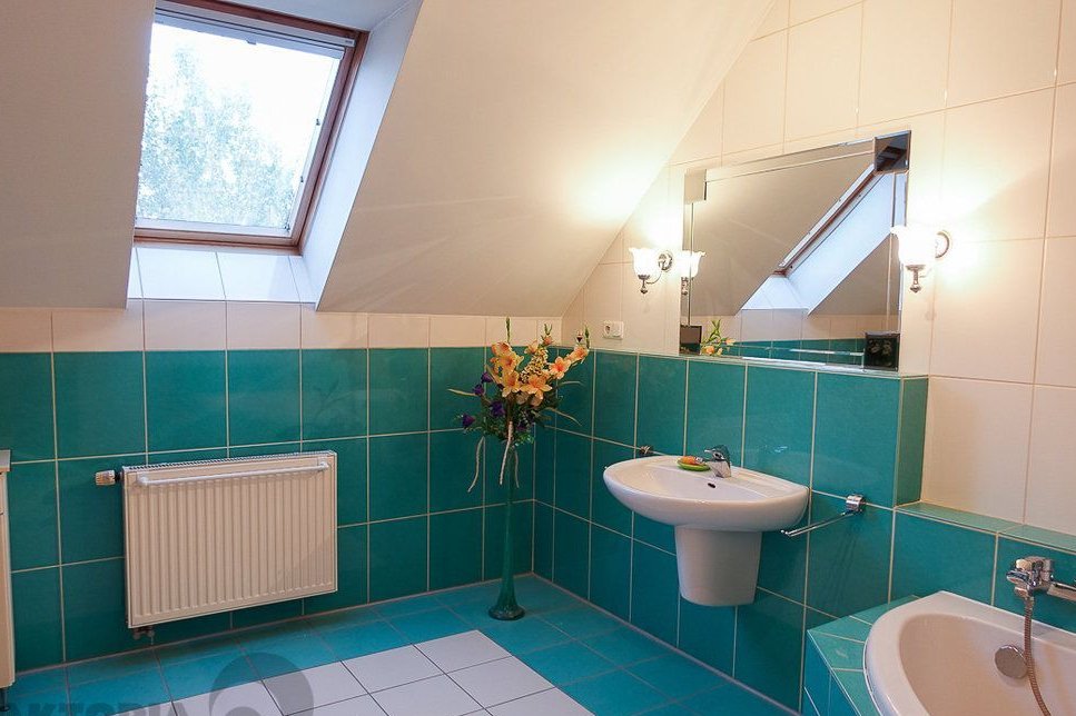 *Łazienka o powierzchni 11,1 m² (po podłodze 13,5 m²) z wanną, umywalką, WC i bidetem, z możliwość zainstalowania kabiny prysznicowej, okno połaciowe.