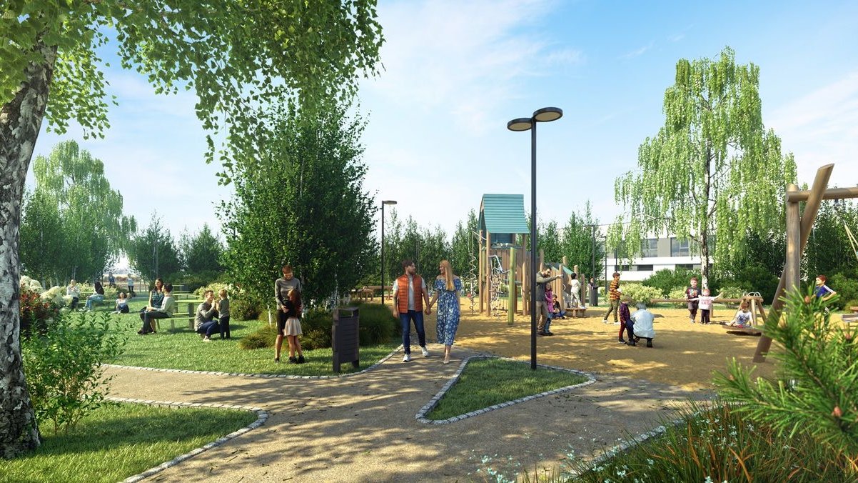 Ponad 4000 m² strefy relaksu – ławki, zieleń, miejsce na grilla
