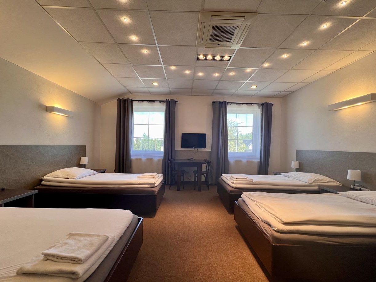 10 pokoi hotelowych z łazienkami (toalety, kabiny prysznicowe i umywalki). Wejście na poddasze zapewniają m.in. schody prowadzące z sali restauracyjnej