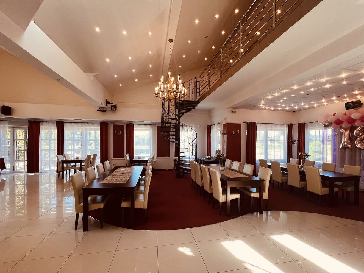 Recepcja+ sala główna + bar + kuchnia + toalety + pomieszczenia socjalne + magazyny + chłodnia + 2 sklepy + garaż + agregatorownia