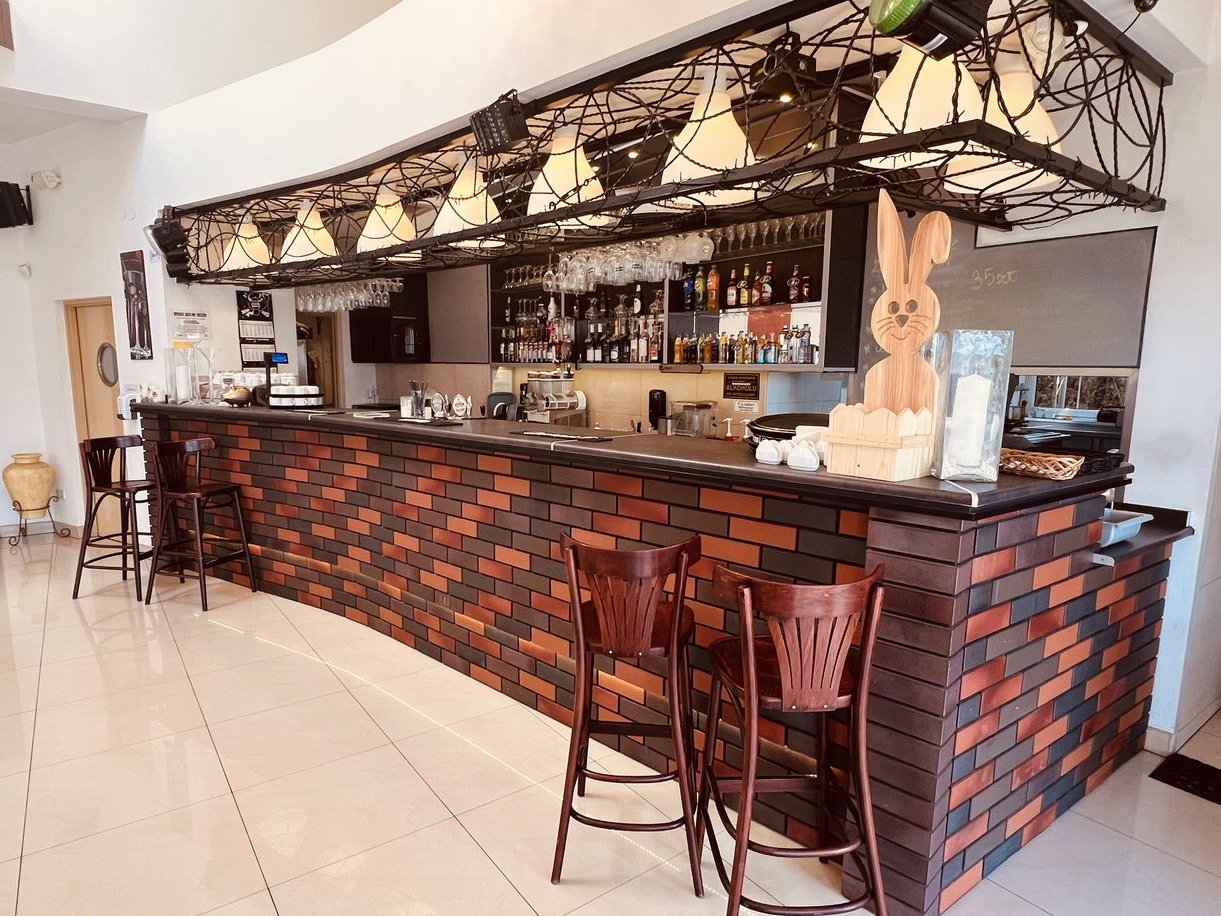 W części restauracji i na schodach gresy polerowane oraz antypoślizgowe. W pokojach wykładziny niepalne i niedymiące. Na ścianach farba z atestami niepalności. W łazienkach na podłogach terakota i glazura, w częściach produkcyjnych i magazynach gres techniczny.