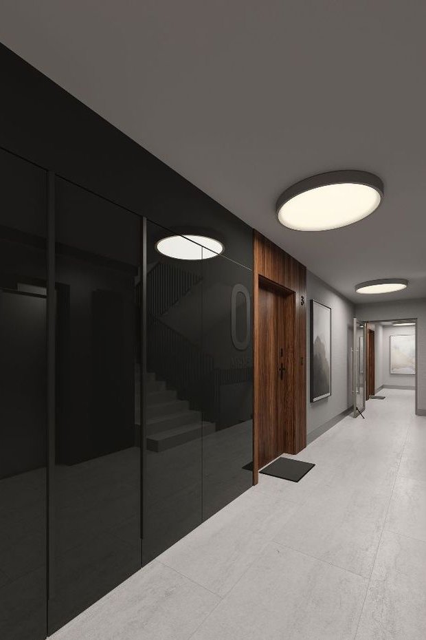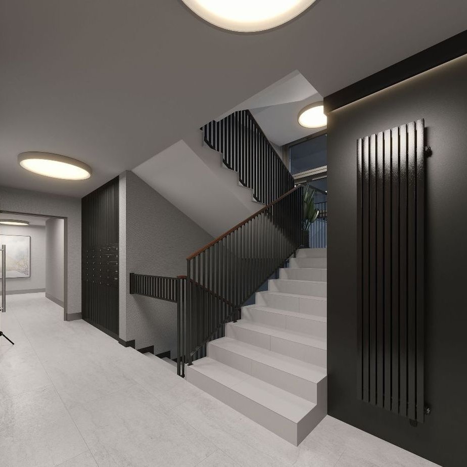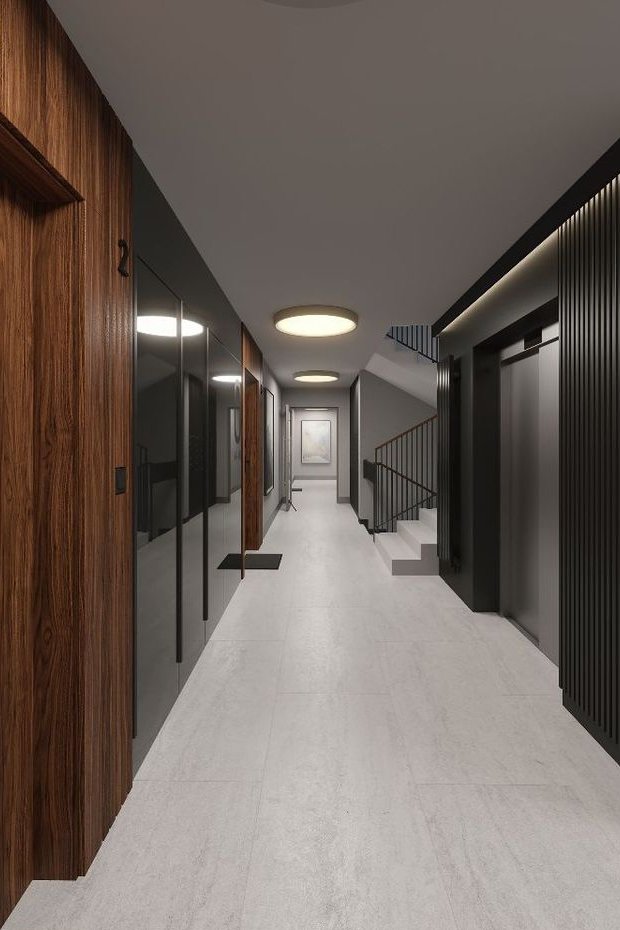 Inwestycja wyróżnia się nie tylko atrakcyjną lokalizacją, ale także niezwykłą dbałością o detale. Klatki schodowe zachwycają elegancją i starannie dobranymi materiałami – ściany zostały pokryte tapetami o wysokiej jakości, a szachty techniczne efektownie ukryto za lustrami, które wizualnie powiększają przestrzeń i wprowadzają do wnętrz dodatkowe światło. Całość aranżacji dopełniają nowoczesne grzejniki dekoracyjne, które podkreślają prestiżowy charakter inwestycji.