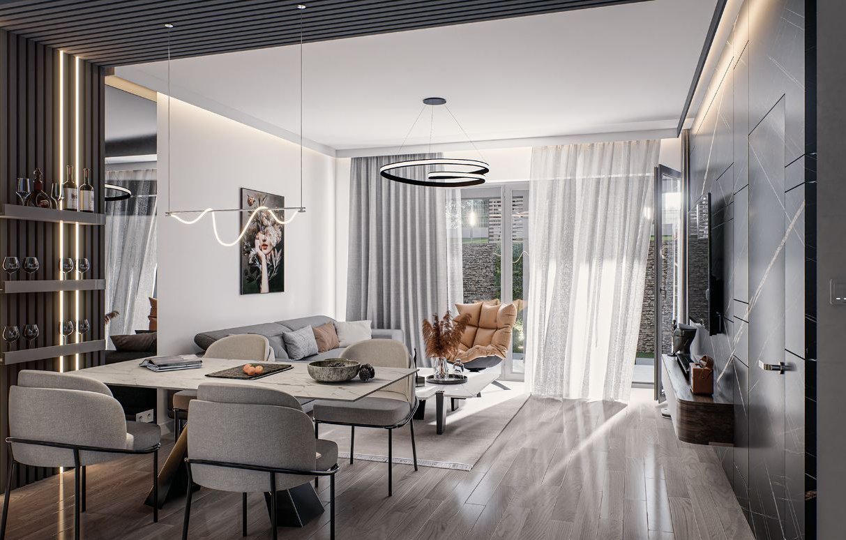 Wnętrza domów zostały zaprojektowanie tak, aby zagwarantować codzienny komfort mieszkania oraz zapewnić prywatność i spokój wszystkim mieszkańcom. Inwestycja składa się z 8 komfortowych domów.