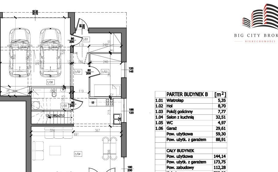 - duży garaż w bryle budynku
