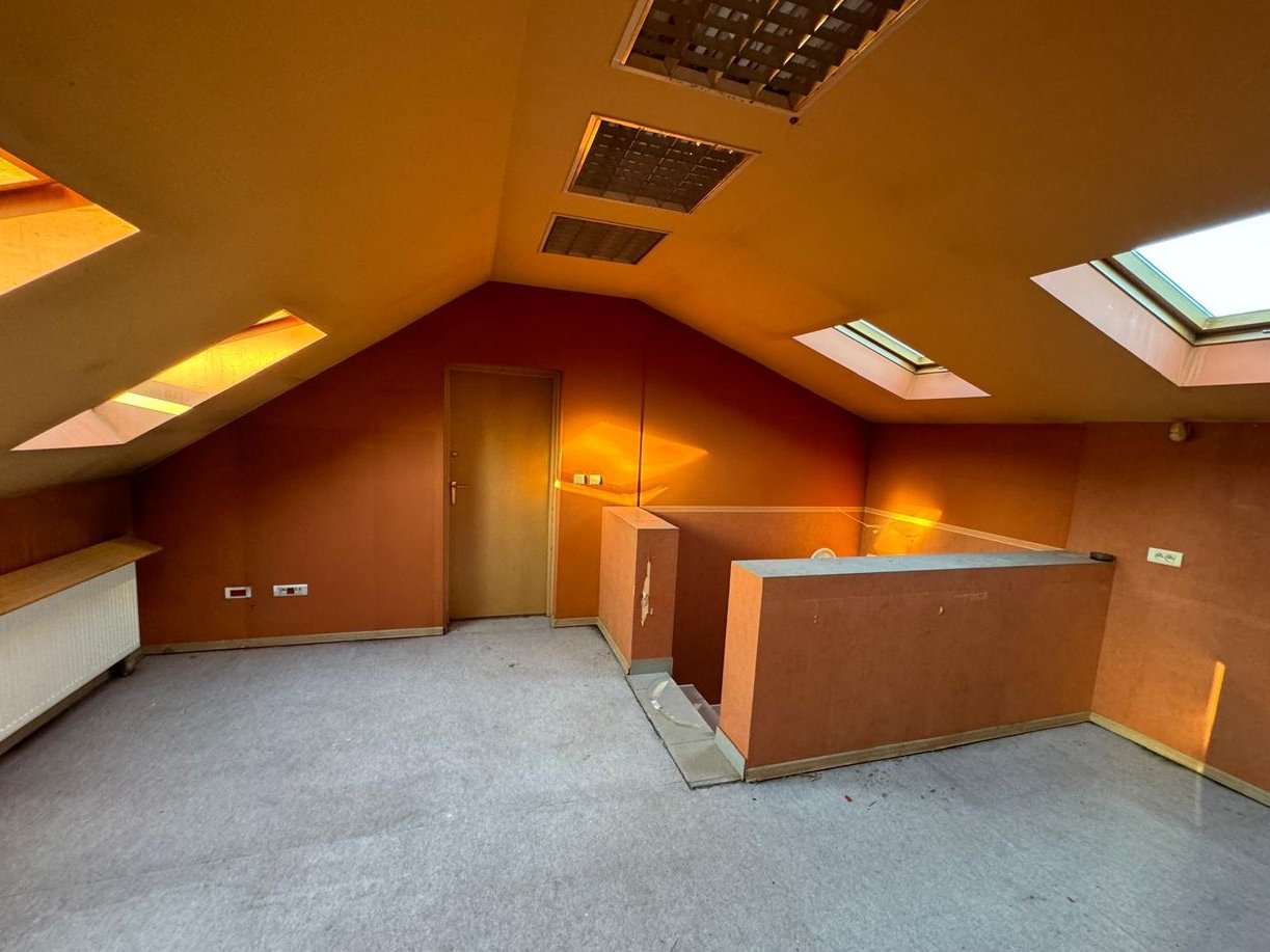Układ: PRZYZIEMIE 123,5 m2 ( biuro-20,9 m2 , łazienka , garaż 18,6m2 , 4 magazyny:10,4 m2, 19,0m2, 14,6m2 i 14,1m2 , komunikacja 15,1 m2 i wiatrołap 2,0m2 ; I PIĘTRO 68,3 m2 (biuro 24,9m2 , biuro 20,0m2, wc, komunikacja 18,2m2 ).