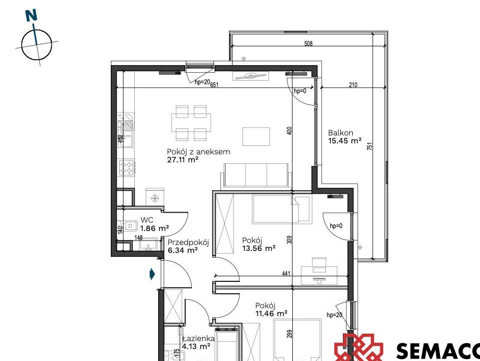 3-pokojowe mieszkanie 64,46 m² z balkonem - ul. Odlewnicza, Kraków