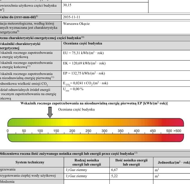 Świadectwo energetyczne - wynik bardzo dobry