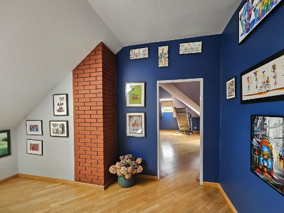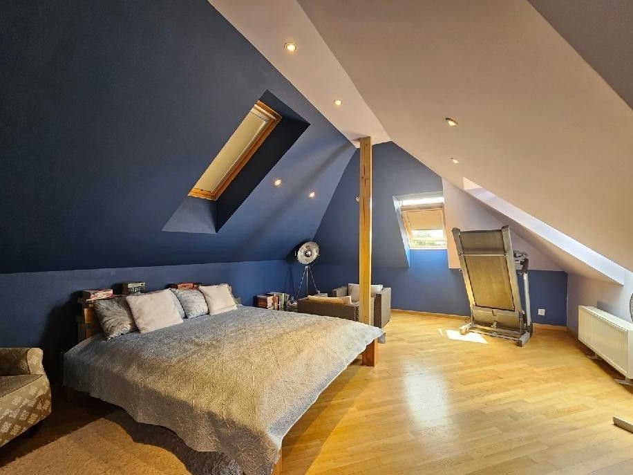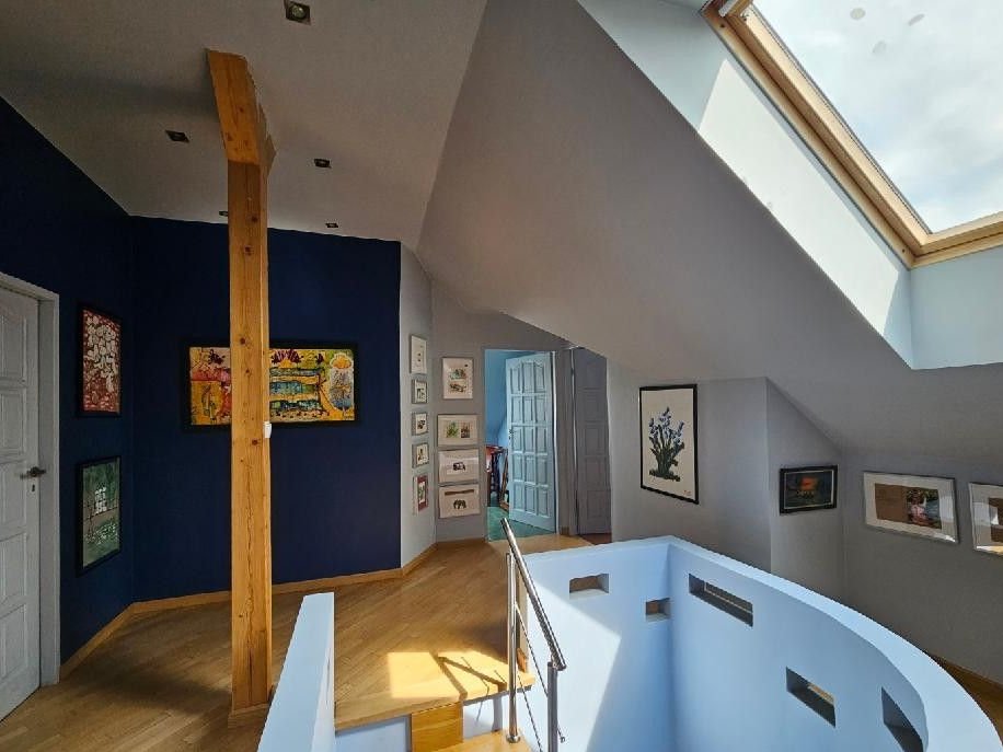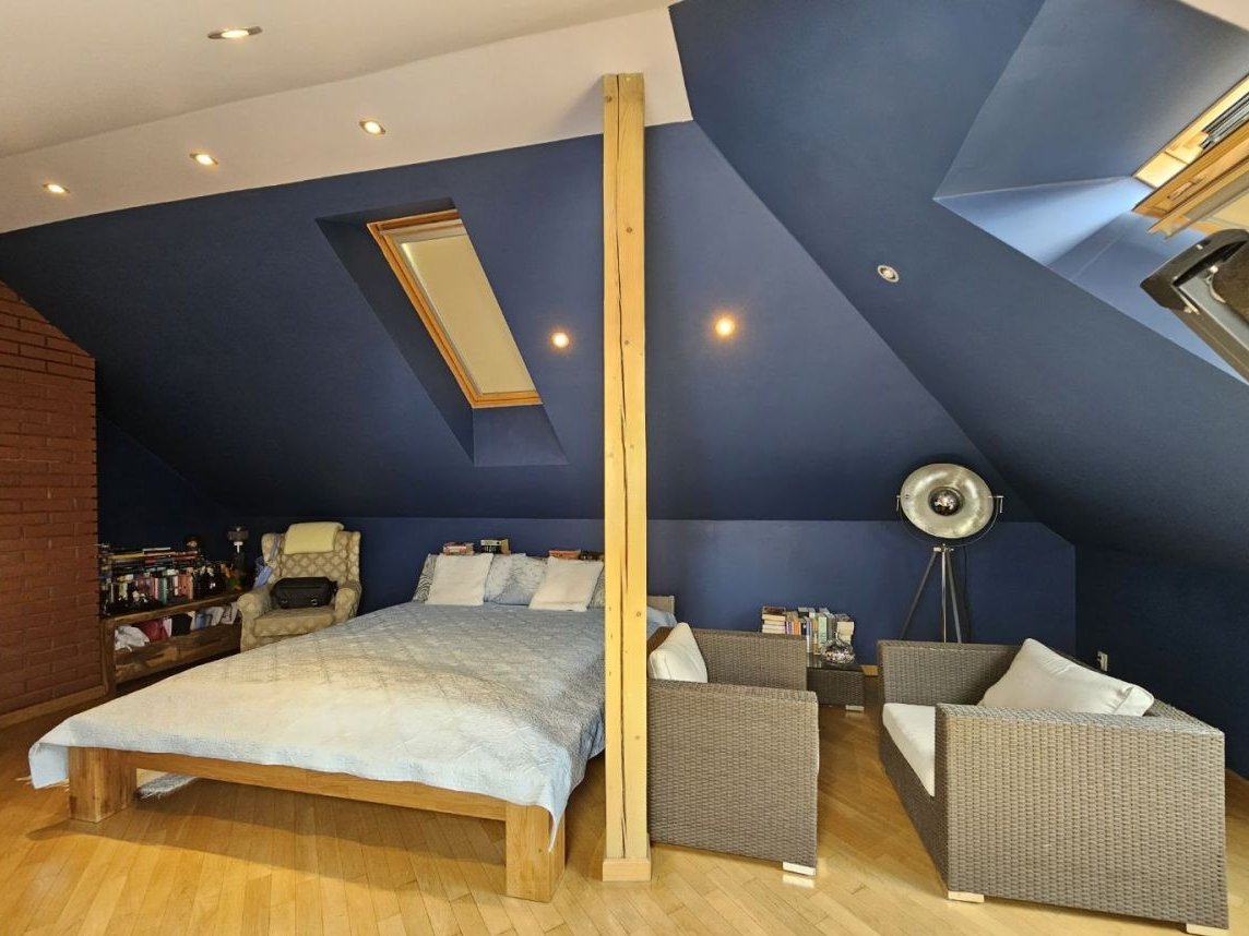 piętro - dwie sypialnie po 22m2, łazienka z wanną i z kabiną - 10m2, garderoba - 4m2 oraz ciąg komunikacyjny.