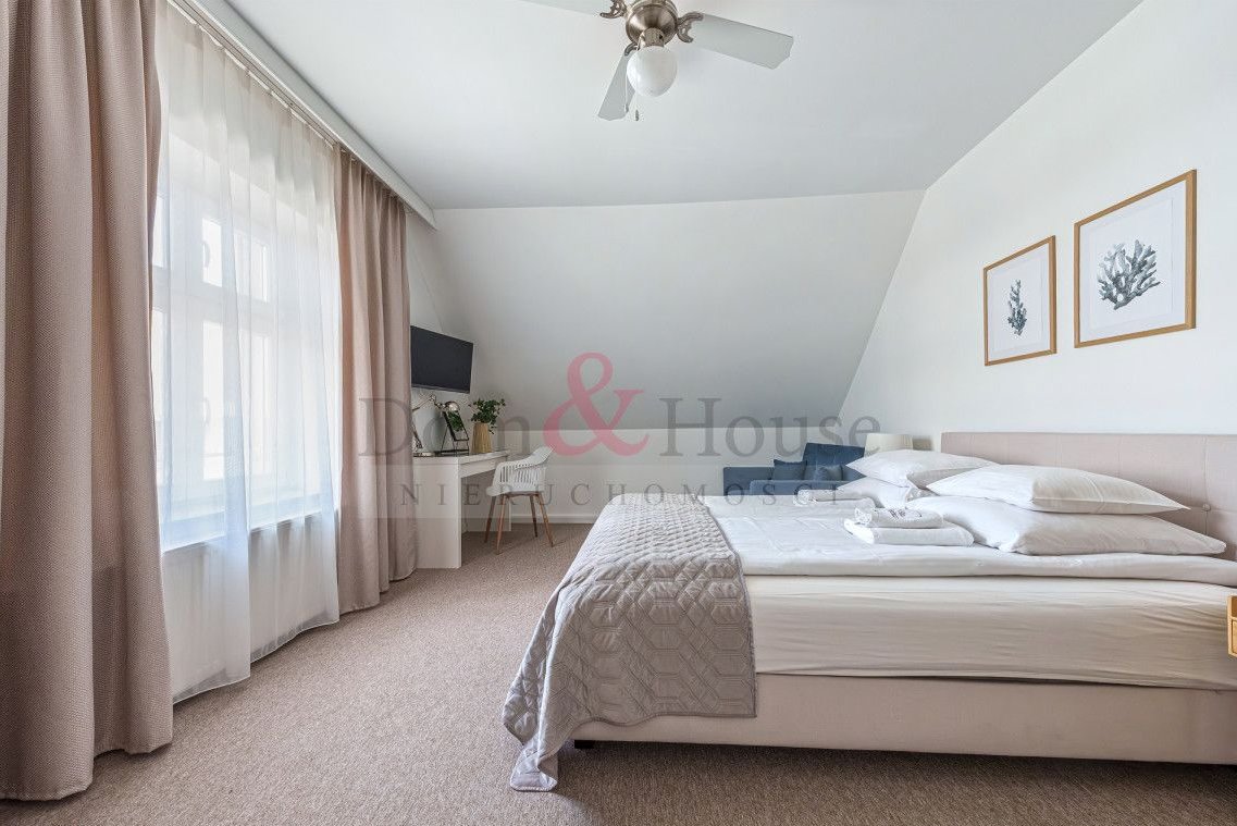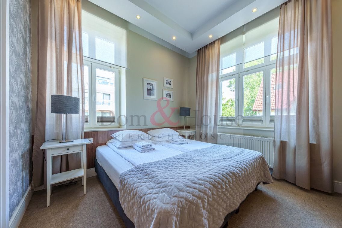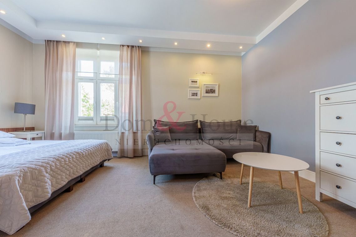 Willa to elegancki, stylowy budynek z lat 20 tych ubiegłego wieku, która przeszła gruntowną modernizację w 2016 r. Nieruchomość składa się z dwóch kondygnacji i jest podzielona na 8 samodzielnych, gotowych apartamentów. Na parterze znajdują się 4 apartamenty, na piętrze mieszczą się kolejne 2 apartamenty i dodatkowo w przyziemiu 2 apartamenty. Każdy z apartamentów wyposażony jest w aneks kuchenny, duże podwójne łóżko, kanapę i prywatną łazienkę. Teren działki został zagospodarowany w zieleń oraz miejsce rekreacji do wspólnego spędzania czasu. Znajduje się też kilka miejsc postojowych.