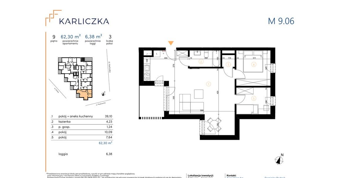 3-pokojowe mieszkanie numer A.9.06 na 9. piętrze w Inwestycji Karliczka Dewelopera Xenakis Development