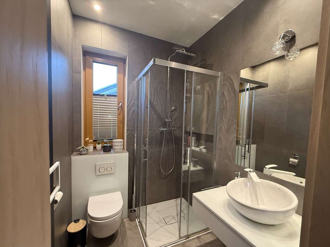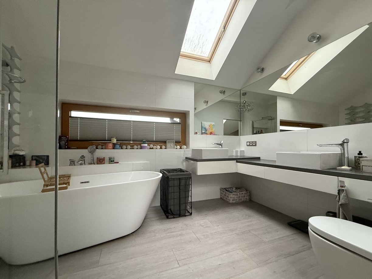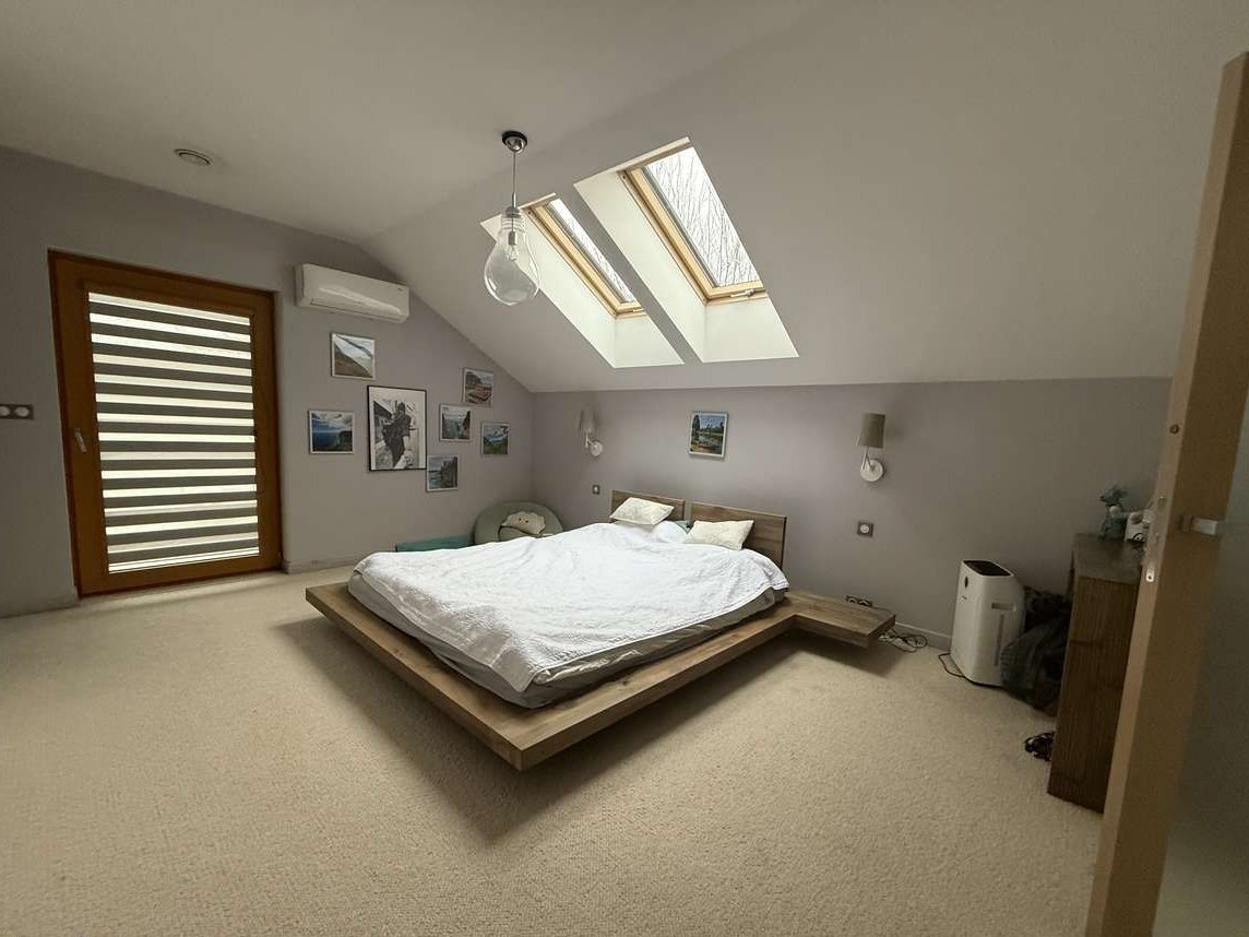 Dom umeblowany i wyposażony (dwuskrzydłowa lodówka z zamrażarką, piekarnik, płyta indukcyjna, pralka, suszarka). Posiada rekuperację, instalację fotowoltaiczną, klimatyzację, zadaszony taras, rolety antywłamaniowe ( we wszystkich oknach, również na oknach dachowych), rolety dzień-noc w większości okien, system alarmowy.
