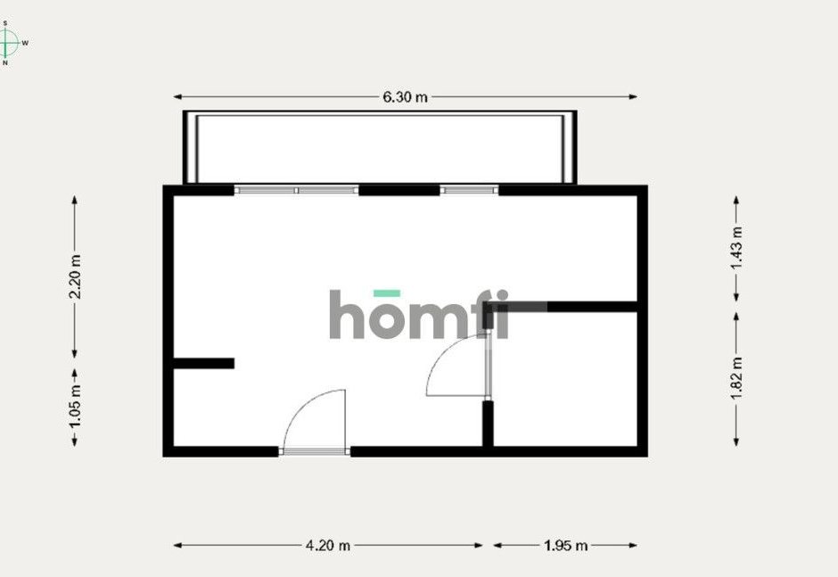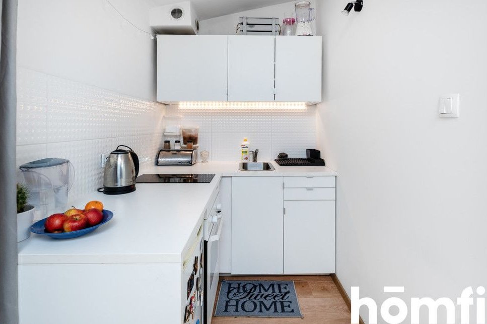 A fully equipped studio apartment on the 5th floor with an area of over 22 m2 plus a 5 m2 balcony.