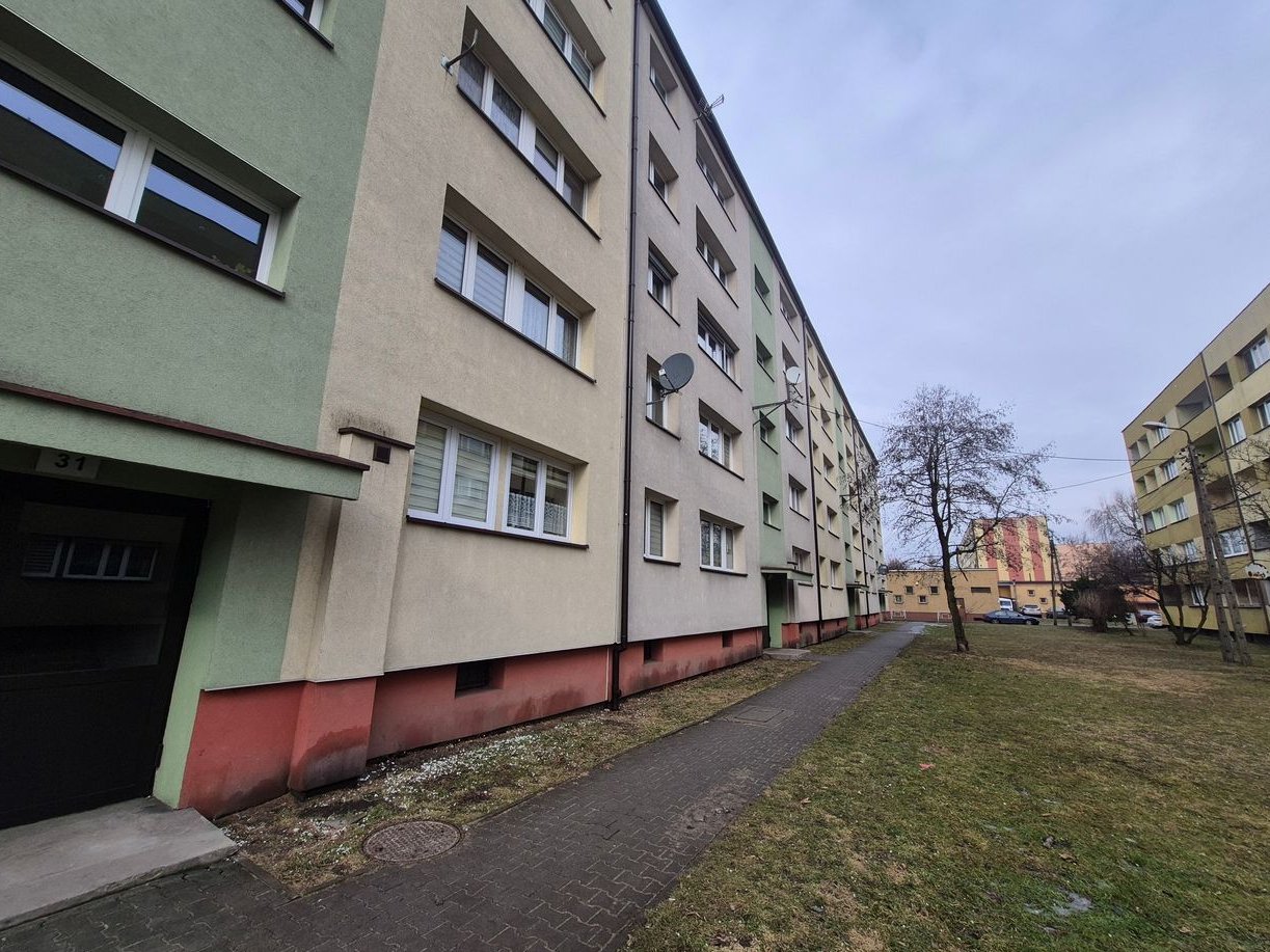 Na powierzchnię mieszkania składają się oddzielna, widna kuchnia, duży pokój, przedpokój oraz łazienka z wc.