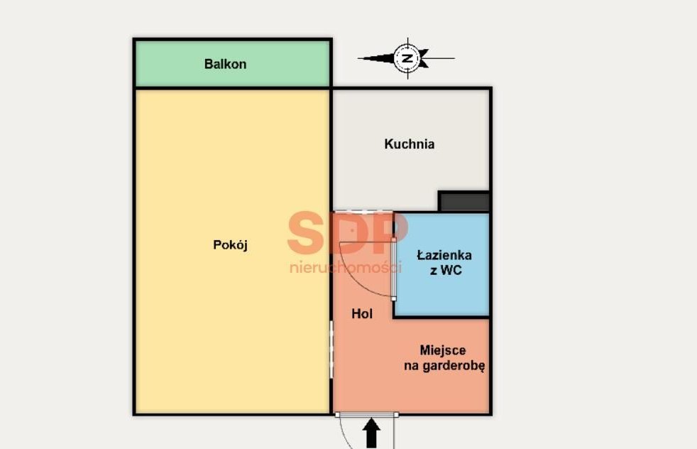 Kawalerka o powierzchni 28,07 m², położona na 7. piętrze w wieżowcu z lat 70.