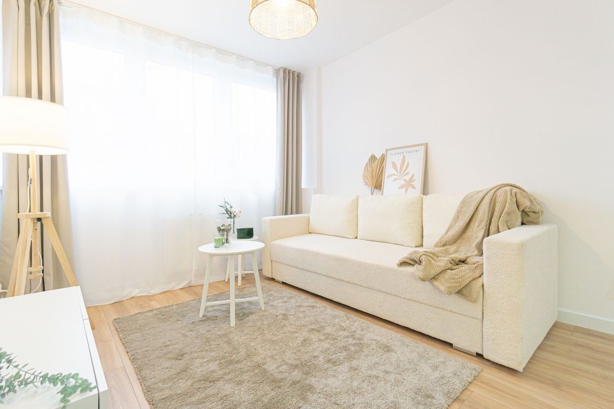 Mieszkanie zostało funkcjonalnie zaprojektowane, dzięki czemu udało się wydzielić strefę dzienną oraz sypialnianą, mimo niewielkiego metrażu.
