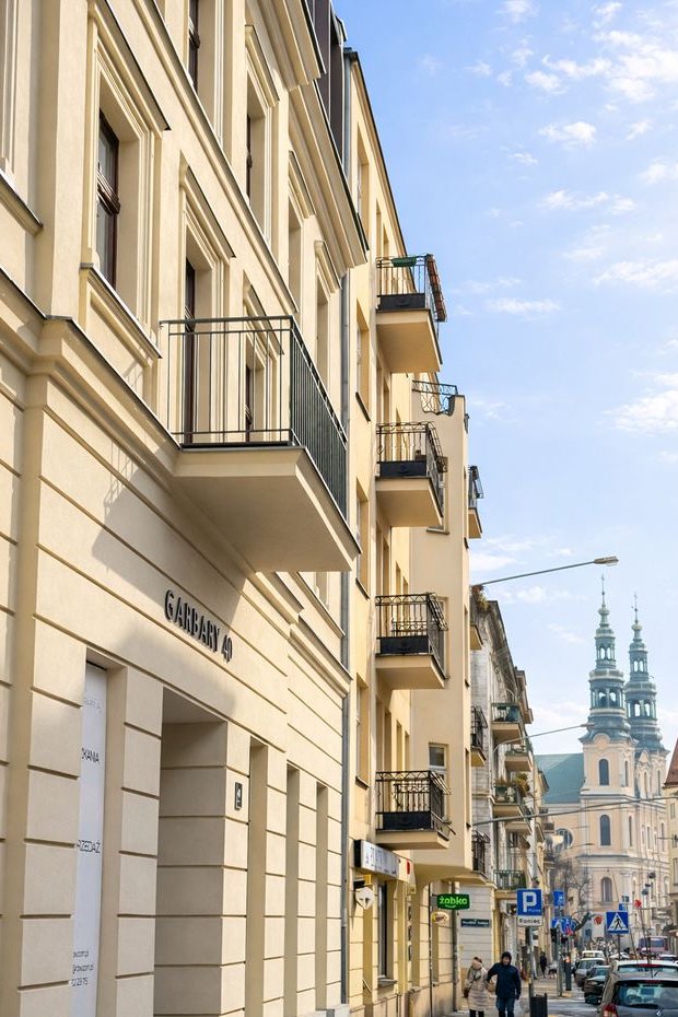 Mieszkanie znajduje się w kamienicy po kompleksowej rewitalizacji, w której połączono historyczny charakter budynku z nowoczesnym standardem wykończenia.