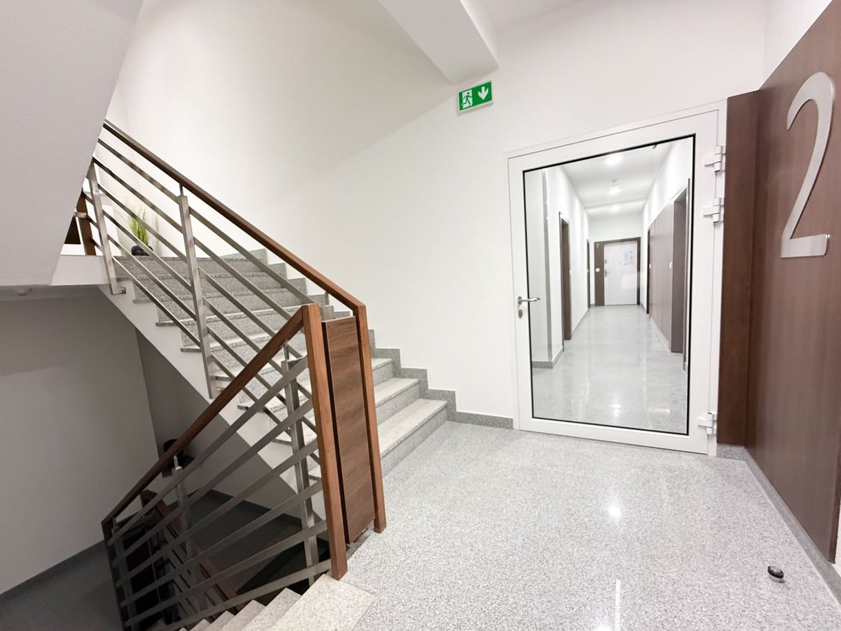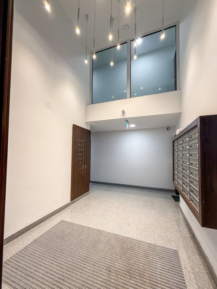 Mieszkanie znajduje się w kamienicy, która przeszła pełną rewitalizację z dbałością o zachowanie oryginalnych elementów architektonicznych. W częściach wspólnych widoczne są zachowane ceglane ściany na klatkach schodowych, które podkreślają charakter budynku i nadają mu wyjątkowego klimatu. Wejście do kamienicy jest eleganckie, a klatki schodowe czyste i zadbane. Budynek wyposażony jest w windę, wykończony materiałami wysokiej jakości, a teren inwestycji jest zamknięty i zabezpieczony domofonem.