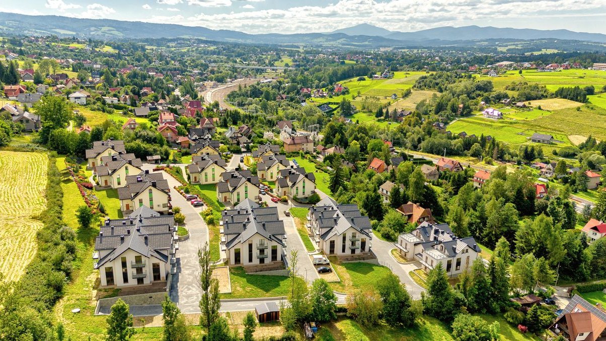 Jednocześnie osiedle przez swoje położenie (w pobliżu wjazd na S7) pozostaje bardzo dobrze skomunikowane z większymi ośrodkami miejskimi, jak Nowy Targ (15min), Zakopane (35min), Myślenice (30min) czy Kraków (45min).