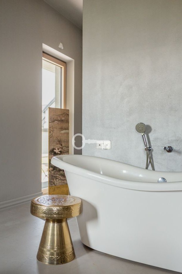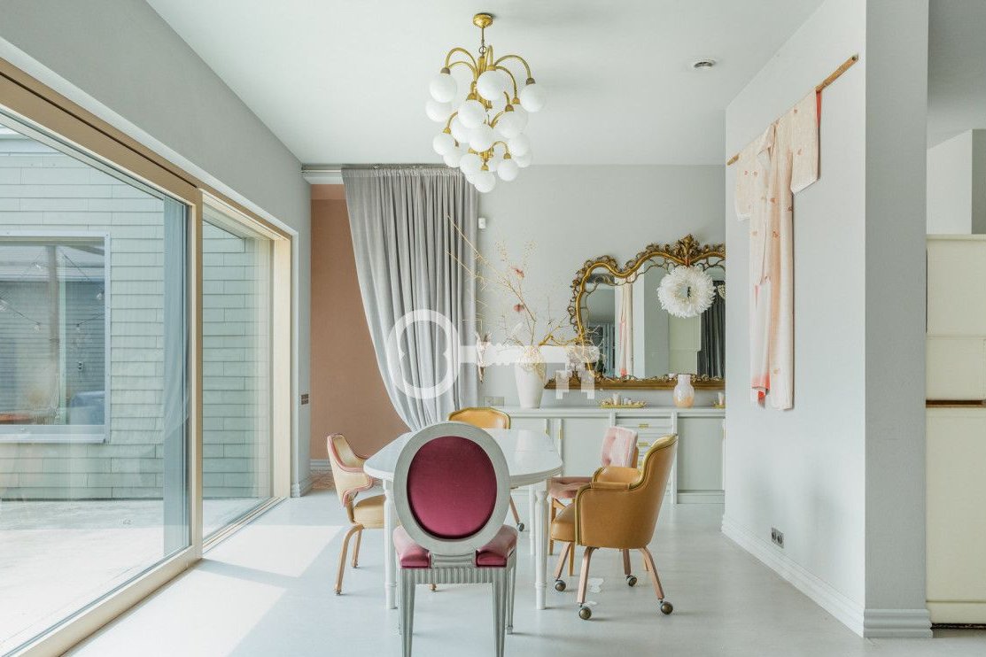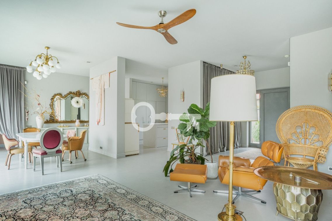 Wnętrze charakteryzuje się ciekawym designem - łączącym to co minimalistyczne i nowoczesne z nutą klasyki oraz elementami kultury wschodu. Wyróżnić również warto przemyślany rozkład: skupiający swoją uwagę na centralnej części dziennej i dający oddech w dwóch skrzydłach prywatnych. Wysokość pomieszczeń oraz duże, panoramiczne okna łączące wnętrza z ogrodem dają poczucie przestrzeni.