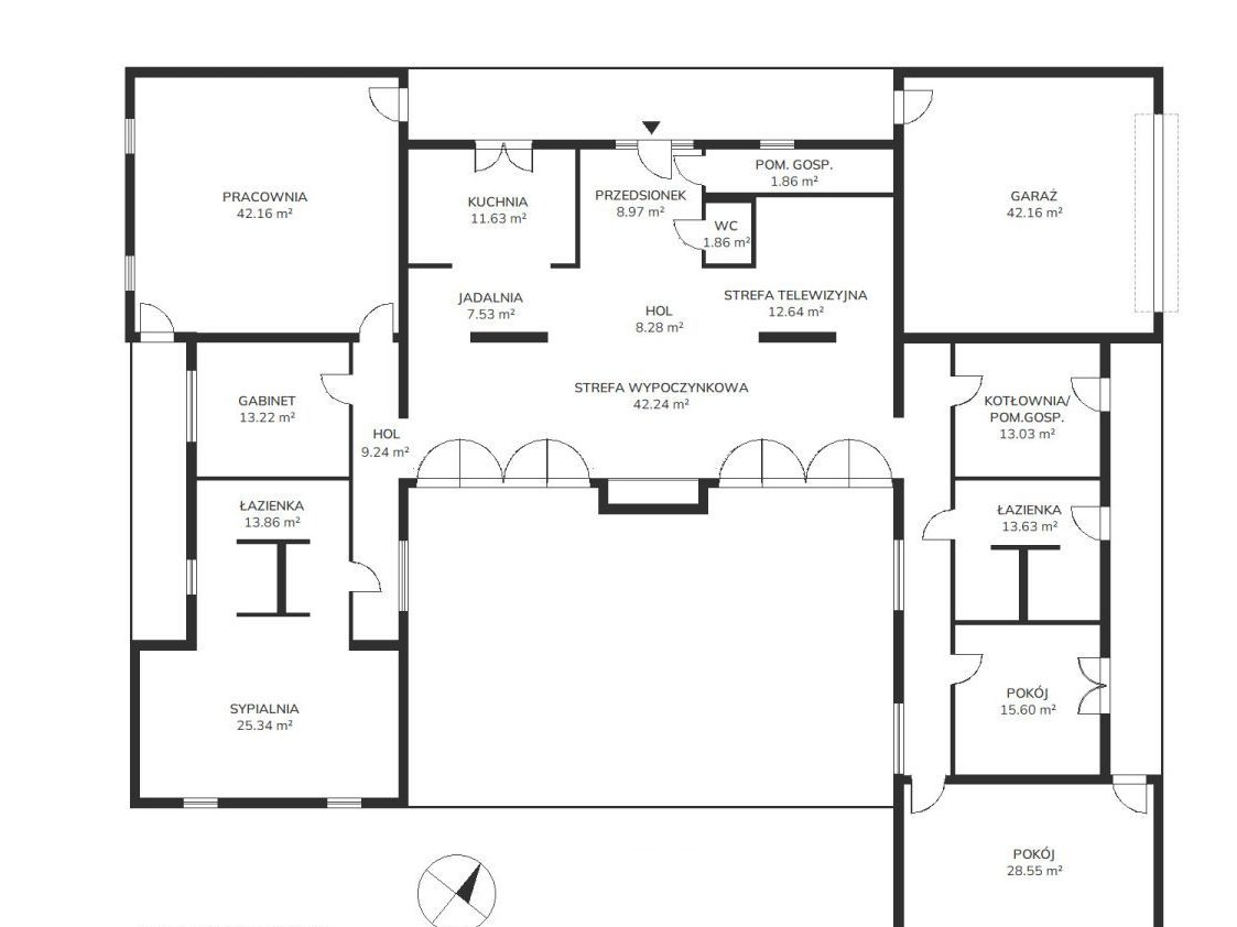 * salon z częścią wypoczynkową, telewizyjną i strefą jadalną,