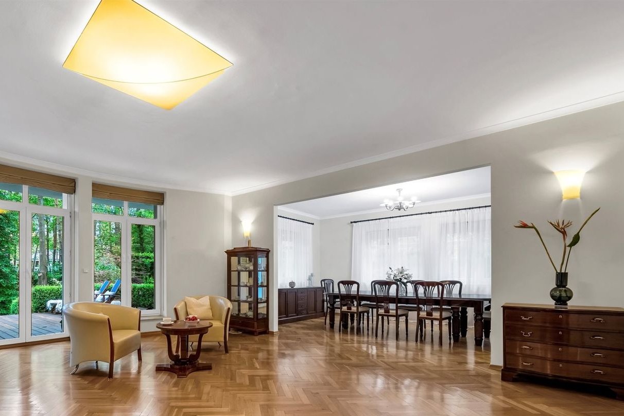 A residence with an usable area of 463m2, full area 605,2m2 (house: 463m2, garage with apartment above: 142m2) residence located on a 1751m2 plot in Dąbrowa Leśna, Łomianki.