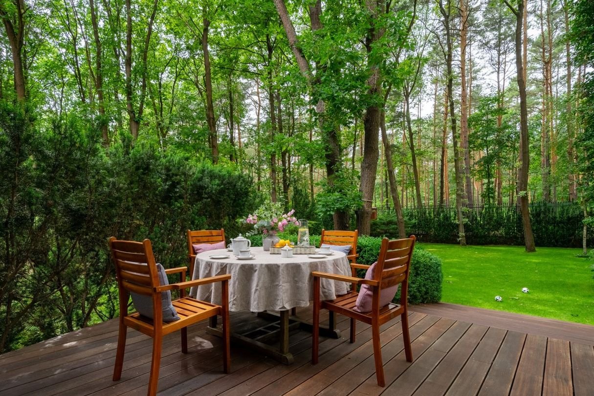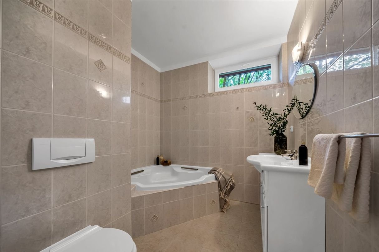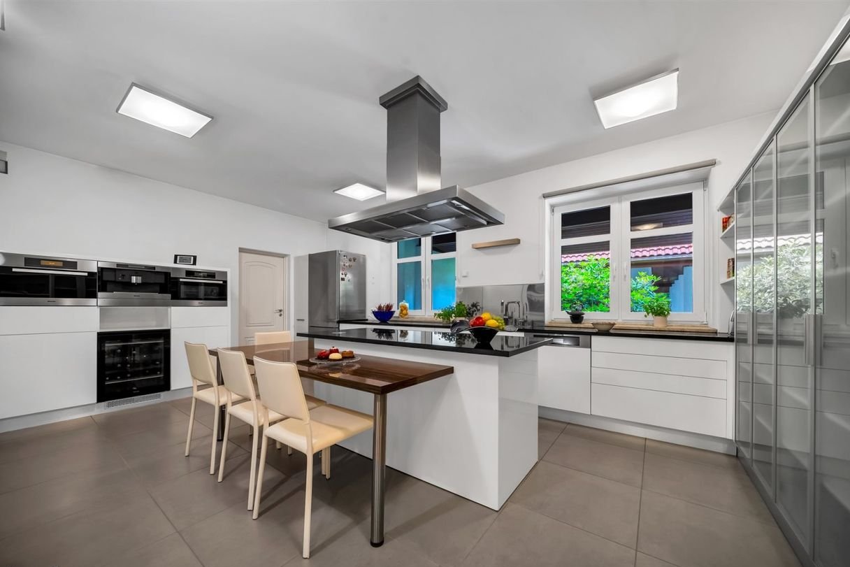 The house has been finished to a very high standard, with attention to every detail. High ceilings and windows overlooking the greenery provide a sense of space and highlight the unique atmosphere of the place. The kitchen features built-in appliances from renowned brands, while the bathrooms are equipped with elegant fixtures. Beautiful hardwood floors throughout the house, underfloor heating, and an automatic irrigation system in the garden and rainwater tanks are also included.