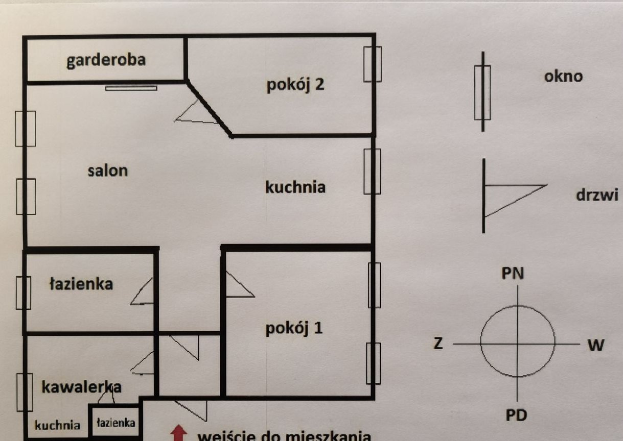 Przedpokoje: Zaraz po wejściu do mieszkania przedpokój, z którego dostaniemy się do "kawalerki" oraz do pozostałej części mieszkania. Oba wejścia posiadają zamykane na zamek drzwi. Drugi przedpokój w głównej części mieszkania, łączący poszczególne pomieszczenia.