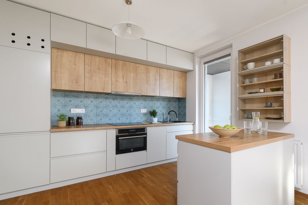 Mieszkanie zostało urządzone dla własnych potrzeb, z dużą dbałością o jakość materiałów i funkcjonalność. Wnętrze utrzymane jest w ciepłym, ponadczasowym stylu, a całość jest w pełni wyposażona w meble oraz sprzęt AGD.