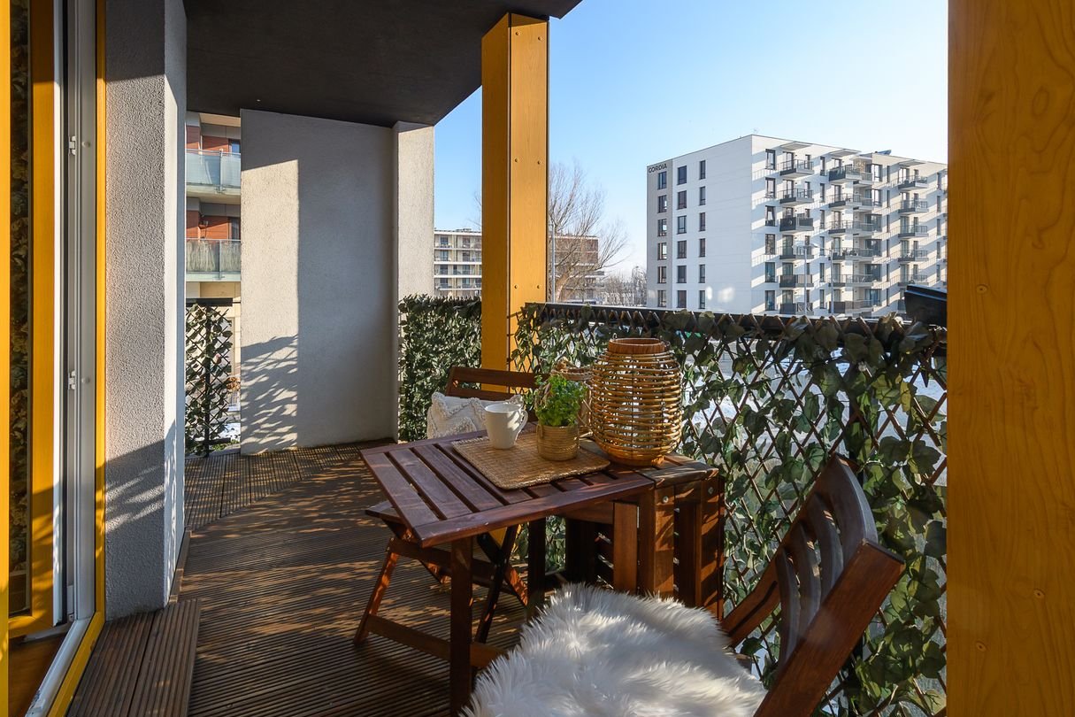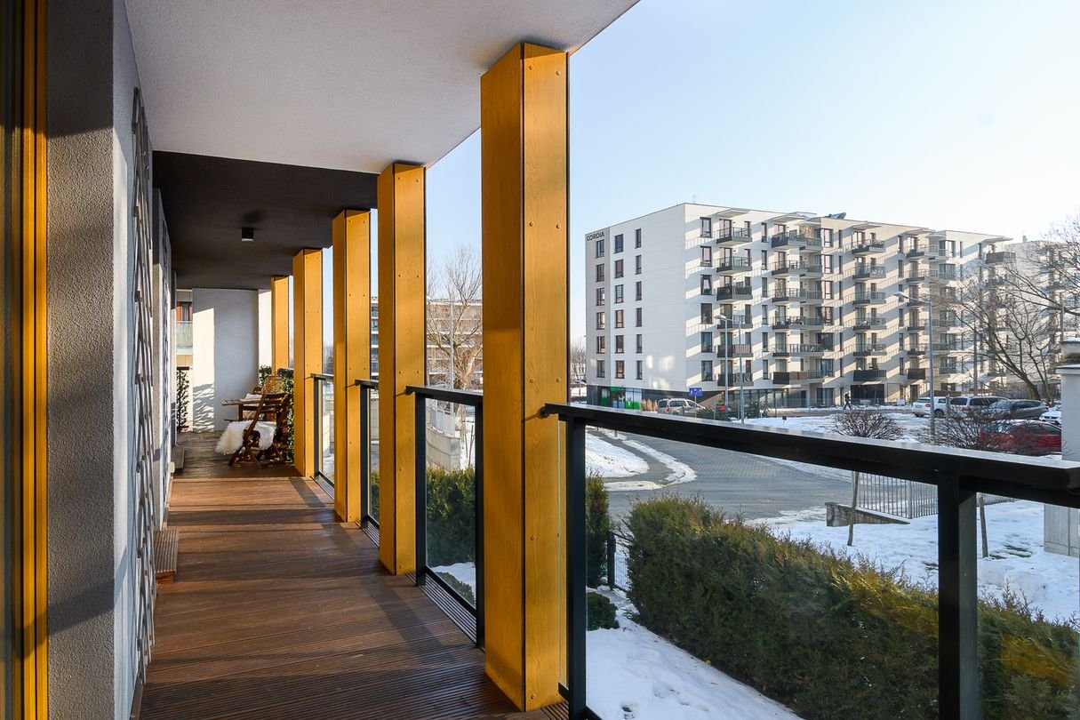 Imponujący balkon o powierzchni ok. 25 m², biegnący wokół całego mieszkania - idealne miejsce na relaks, poranną kawę lub aranżację zielonej strefy wypoczynku.