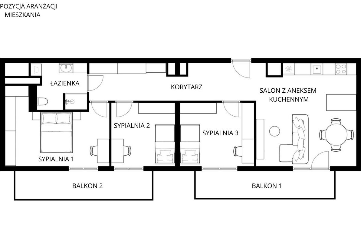 Aneks kuchenny wyposażony został w nowy sprzęt AGD (piekarnik, płytę indukcyjną oraz okap) w zabudowie.