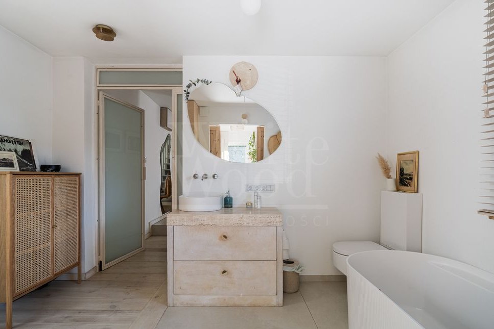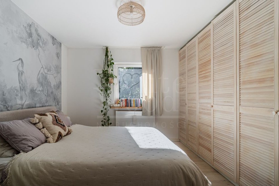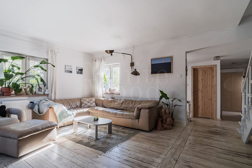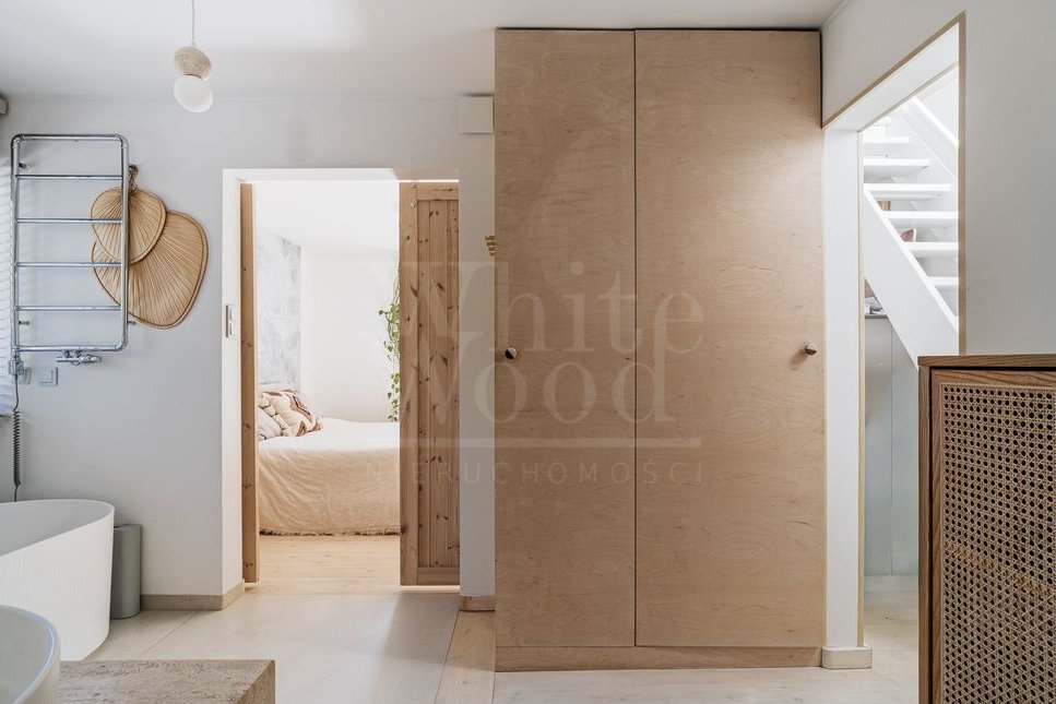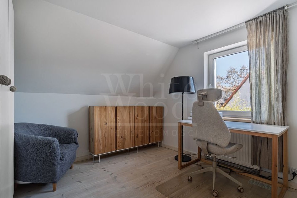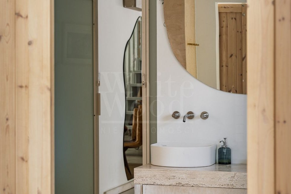 Dom jest jasny, dobrze doświetlony. Wnętrze spójnie zaaranżowane przez architekta z użyciem naturalnych materiałów typu kamień czy drewno. Układ funkcjonalny i zaprojektowany tak, aby wygodnie mieszkało się tam rodzinie.