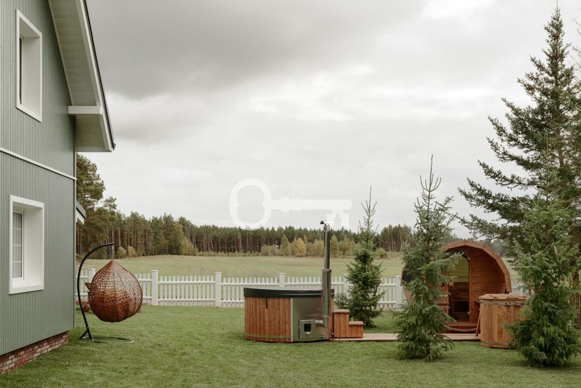 This new detached house of 140 m², situated only 120 meters from the lake, combines Scandinavian-inspired modern architecture with natural materials and functional technological solutions. Designed and built by an experienced premium home designer, it stands out with a cohesive architectural concept, attention to detail, and carefully planned interiors. The property is fully finished turnkey, and the surrounding area has been landscaped to maximize relaxation and enjoyment of nature.