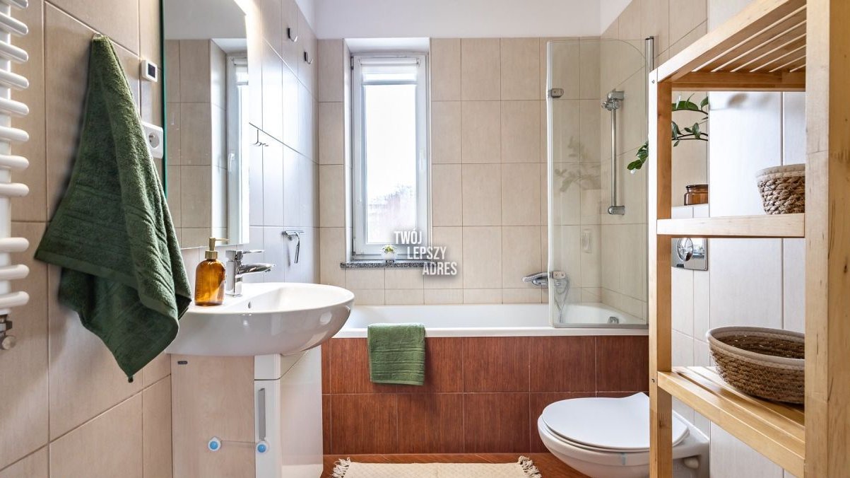 Ekspozycja okien na północ i południe sprawia, że mieszkanie jest bardzo jasne i słoneczne. Z obydwu stron jest ładny widok na zieleń: od północy na park wokół fortu, od południa na dachy budynków.
