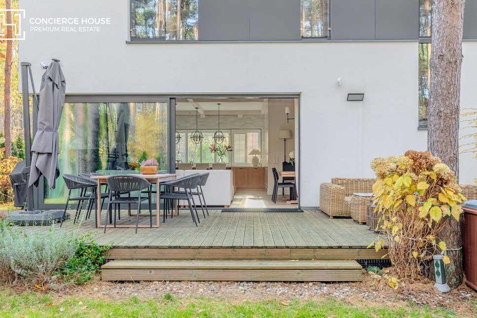 Wyobraź sobie poranek: dzieci wybiegają do ogrodu, pies biega po trawie, a Ty pijesz kawę na tarasie, obserwując słońce przebijające się przez korony starych drzew. Wieczorem całej rodzinie towarzyszy śmiech w ogrodowym jacuzzi, a po kolacji z przyjaciółmi w salonie – cisza i spokój, tak rzadko osiągalne w Warszawie. Jeśli marzysz o codziennym komforcie w otoczeniu natury – ten dom powstał z myślą o Twojej rodzinie.