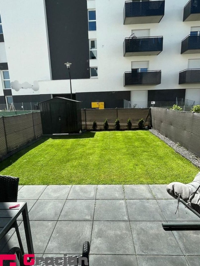 Mieszkanie znajduje się na parterze, posiada 50 metrowy zagospodarowany ogród do wyłącznego korzystania ( z domkiem gospodarczym i wyłożonym kostka tarasem)