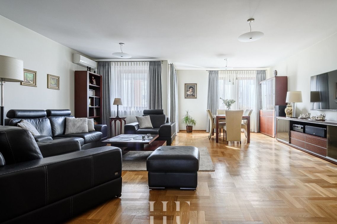 Na sprzedaż komfortowe, funkcjonalne mieszkanie o powierzchni 139,70 m², zajmujące całe piętro kameralnego budynku przy ul. Witwickiego 6 na warszawskim Gocławiu. Nieruchomość położona jest na zamkniętym osiedlu, w jego cichej, końcowej części - wzdłuż kanałku, w otoczeniu niskiej zabudowy jednorodzinnej i kameralnych budynków. Lokalizacja zapewnia poczucie prywatności oraz klimat zbliżony do mieszkania w domu.