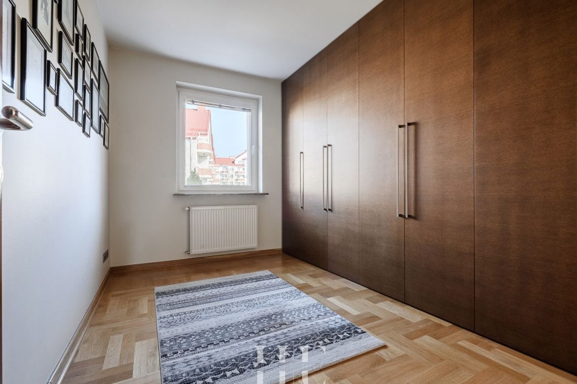 W pokojach położony jest drewniany parkiet. W całym mieszkaniu zamontowano drewniane drzwi, okna PCV oraz instalację alarmową.