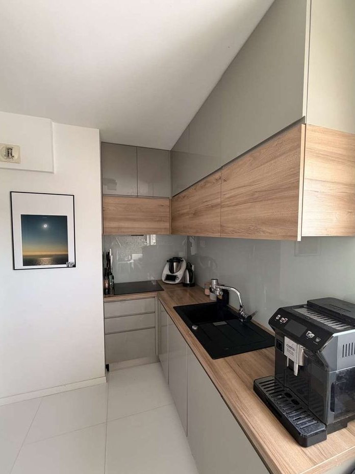 Mieszkanie jest w pełni umeblowane i gotowe do zamieszkania. W cenie pozostaje zabudowa kuchenna wraz ze sprzętem AGD: zmywarka w zabudowie, piekarnik w zabudowie oraz płyta indukcyjna. W korytarzu i łazience znajdują się meble wykonane na wymiar, a w sypialni pojemna szafa.