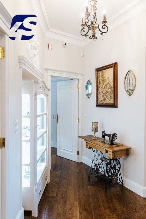 Apartament urządzono w duchu eleganckiej klasyki, z wykorzystaniem litych dębowych podłóg, nadających wnętrzom szlachetności i ciepła, oryginalnych zdobień ściennych i sztukaterii, antyków oraz elementów wystroju z przełomu XX wieku. Starannie dobranego oświetlenia i mebli, które tworzą harmonijną całość z subtelnym, nowoczesnym akcentem. Każdy fragment mieszkania został zaprojektowany z myślą o estetyce, funkcjonalności i ponadczasowym charakterze. Zainstalowany jest nowoczesny piec dwufunkcyjny zapewniający niskie koszty utrzymania, a w części pomieszczeń wykonano ogrzewanie podłogowe.