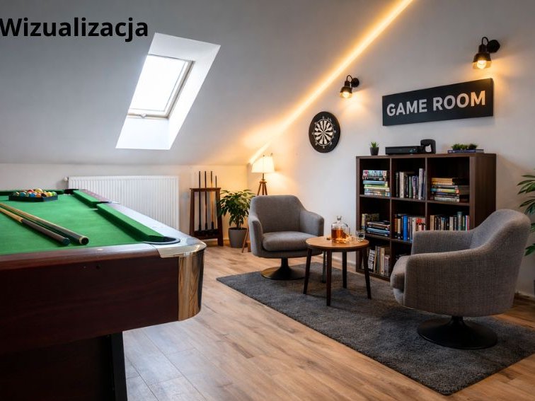 Dom posiada półtora piętra (użytkowe poddasze ze skosami).