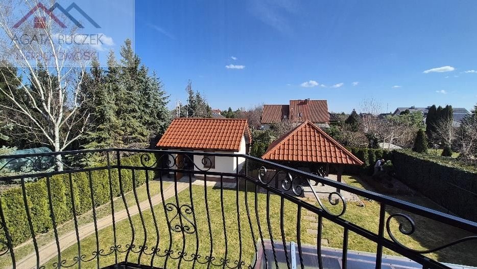 W ogrodzie murowany domek gospodarczy i solidna, drewniana wiata wypoczynkowa. Rozprowadzony system nawadniania z użyciem wody ze studni głębinowej.