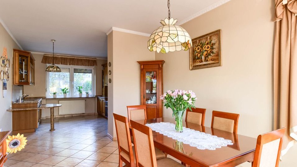 z bezpośrednim wyjściem z jadalni i salonu na taras i dalej do dużego ogrodu.