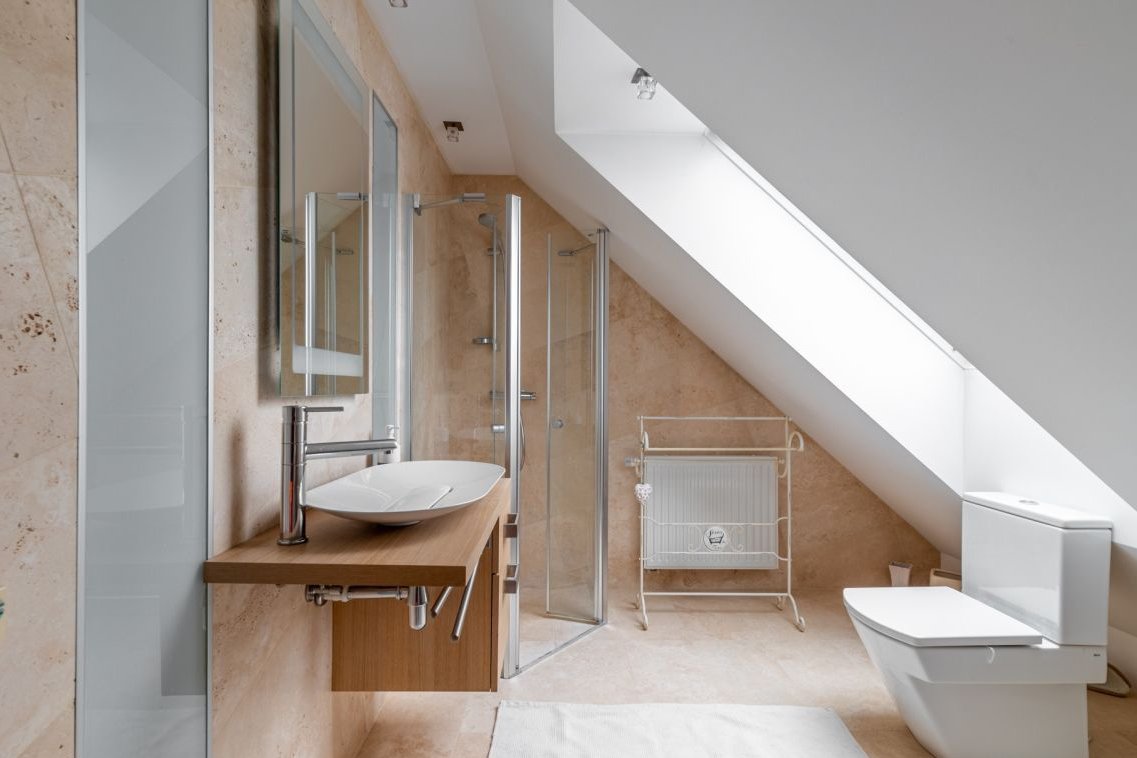* łazienka z sauną.