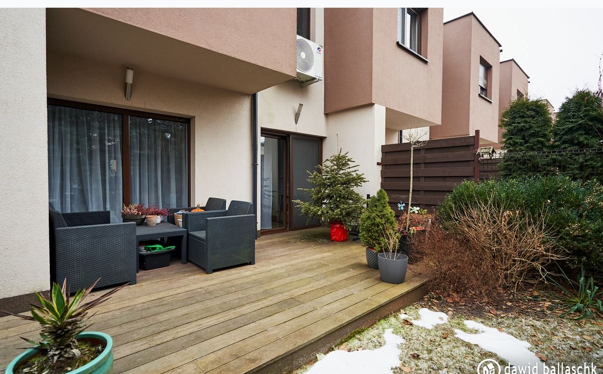 Taras wykonany z egzotycznego drewna Bankirai – idealny do relaksu.