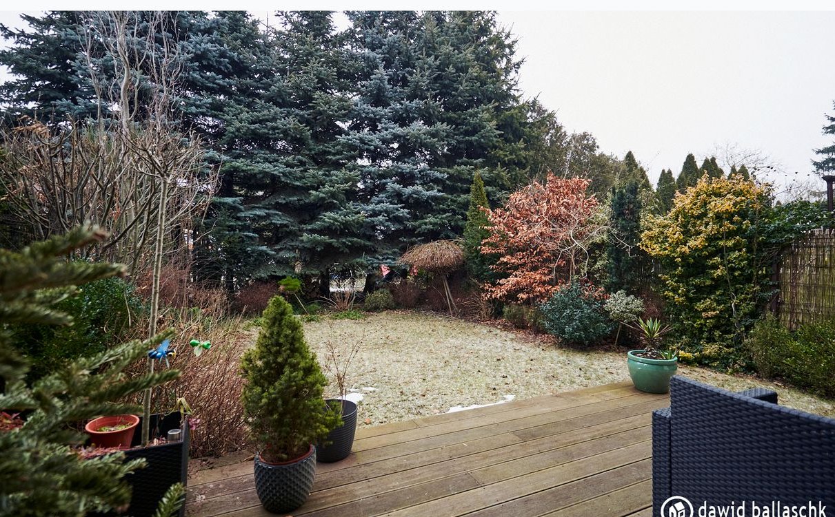 Prawdziwą perłą nieruchomości jest ogród o powierzchni ok. 80 m². To przemyślana kompozycja roślinna, która brała udział w konkursie "Zielony Luboń 2022".