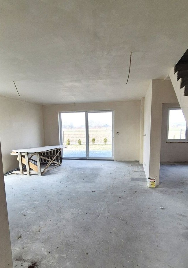Na sprzedaż komfortowy, nowo wybudowany dom w zabudowie bliźniaczej, położony w spokojnej i zielonej okolicy w miejscowości Dobrzyń (gmina Czosnów), w bezpośrednim sąsiedztwie Puszczy Kampinoskiej.