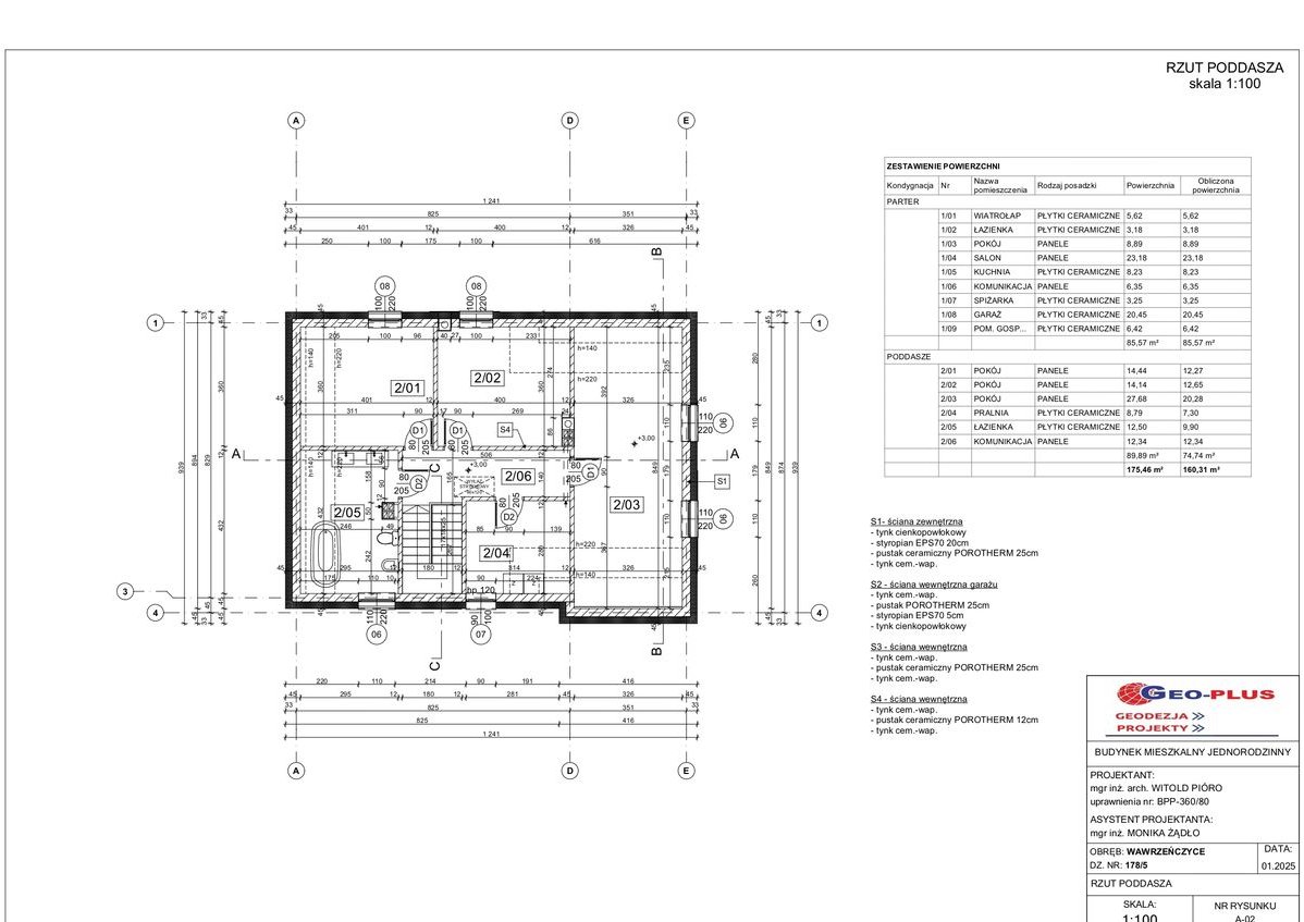 Dom wykonany jest z naciskiem na staranność i jakość, przy użyciu wysokiej klasy materiałów budowlanych, w technologii tradycyjnej: